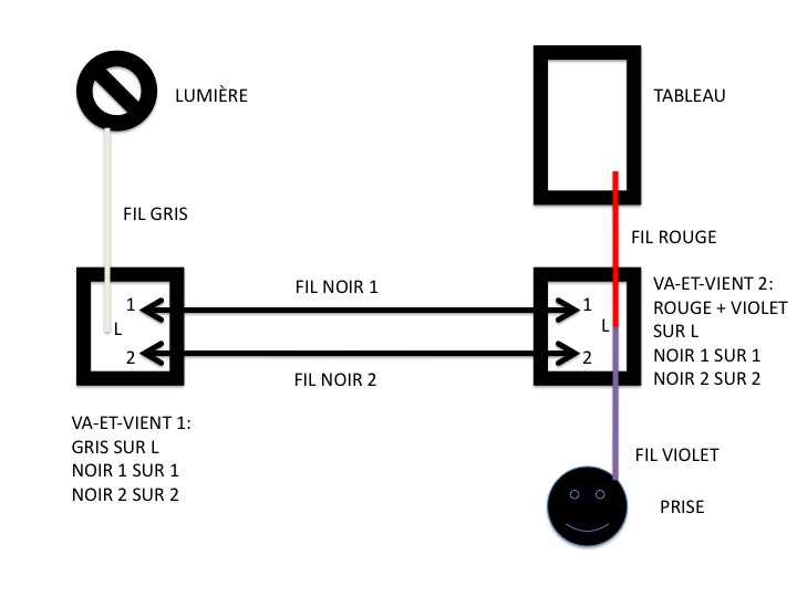 - 2 fils navette qui font la liaison entre les 2 inter (logiquement les 2 fils noirs) ;